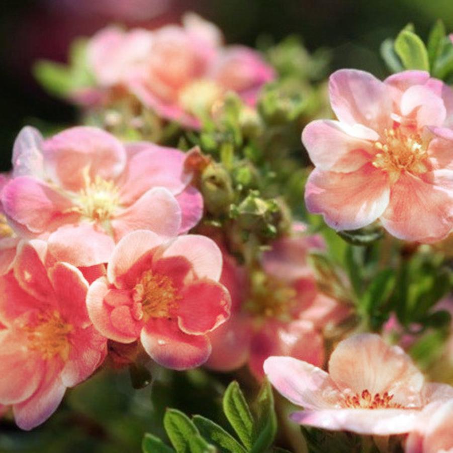 Корни Лапчатки кустарниковой Floppy Disc – низкорослый, компактный и пышный кустарник. Светло–зеленые листья густо покрывают крону куста. Гибкие побеги, от коричневого до серого цветов, довольно крепкие. Полумахровые цветы имеют насыщенный, розовый с сиреневым отливом цвет, с которым эффектно контрастирует желтая серединка. Период цветения не такой долгий, как у других кустарниковых лапчаток – с июня по август.