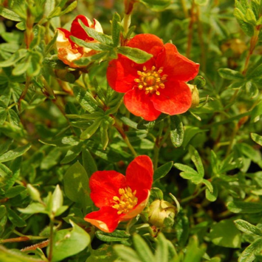 Корни лапчатки Marian Red Robin (Marrob) идеально подходят для создания цветочных композиций в саду. Маленький, аккуратный кустарник, не более 50 сантиметров высотой, до метра шириной, со стелющимися утончёнными побегами. Светло–зелёные сложные листья обычно 5–пальчатые.Цветы яркого красного цвета, с оранжевой серединой, плотно цветут на кустарнике, с июня и до октября. Эффектнее всего цветение смотрится осенью, но и летом цветы мало меняют свой окрас. Крупномер Marian Red Robin (Marrob) любит плодородные, влажные почвы и солнечные места. Благодаря компактности куста и ярким цветам хорошо смотрится, как одиночное растение.