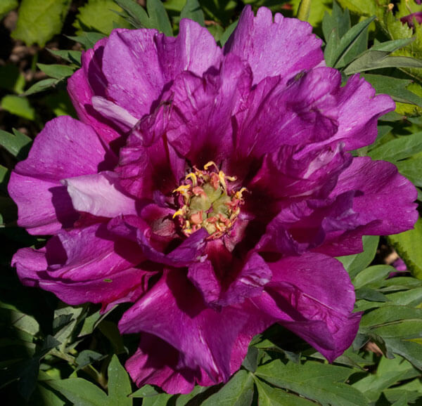 Пион ИТО-гибрид Morning Lilac диаметром 15 см. Волнистые, светло-лиловые лепестки с белыми полосами и тёмным центром. Куст округлой формы. Высота 80-90 см и ширина 120 см.