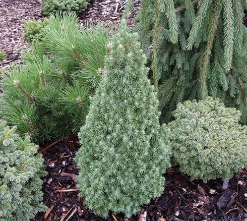 Ель сизая Laurin - карликовая форма с узкоконической кроной. Высота растения - 0,8-1 м, ширина 0,3 м. Растет ель медленно, около 2 см в год. Побеги расположены густо, хвоя 5-10 мм длиной, темно-зеленая, радиально расположенная, мягкая. Корневая система поверхностная.