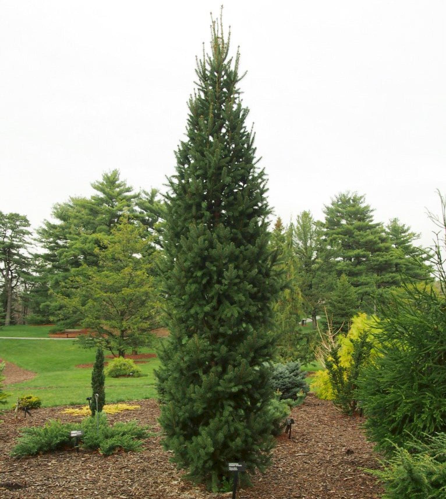 Ель обыкновенная Columnaris - узкое колонновидное хвойное дерево, ветви густо расположены. Вырастает до высоты 10-15 м и 1,5 м в диаметре. Растет быстро, годовой прирост 30 см. В 10 лет высота до 3,0-4,5 м, при диаметре кроны до 1,2 м. Хвоя темно-зеленого цвета, четырехгранная. Любит солнце, но переносит небольшое затенение.