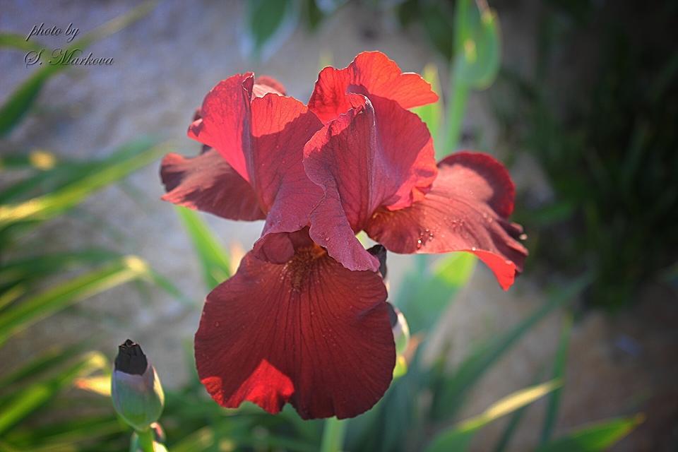 Рассада ириса Spartan относится к группе красных крупных, высокорослых бородатых ирисов. Верхние и нижние доли (стандарты и фолы) окрашены в идентичный малиново-красный цвет, который слегка разбавлен тонкими темно-бордовыми полосками. Бородка – желтая с горчичным оттенком. Каймы на лепестках нет, равномерная окраска распределена по всей площади цветка. Гофрировка слабая, края в основном ровные. Лепестки атласные.