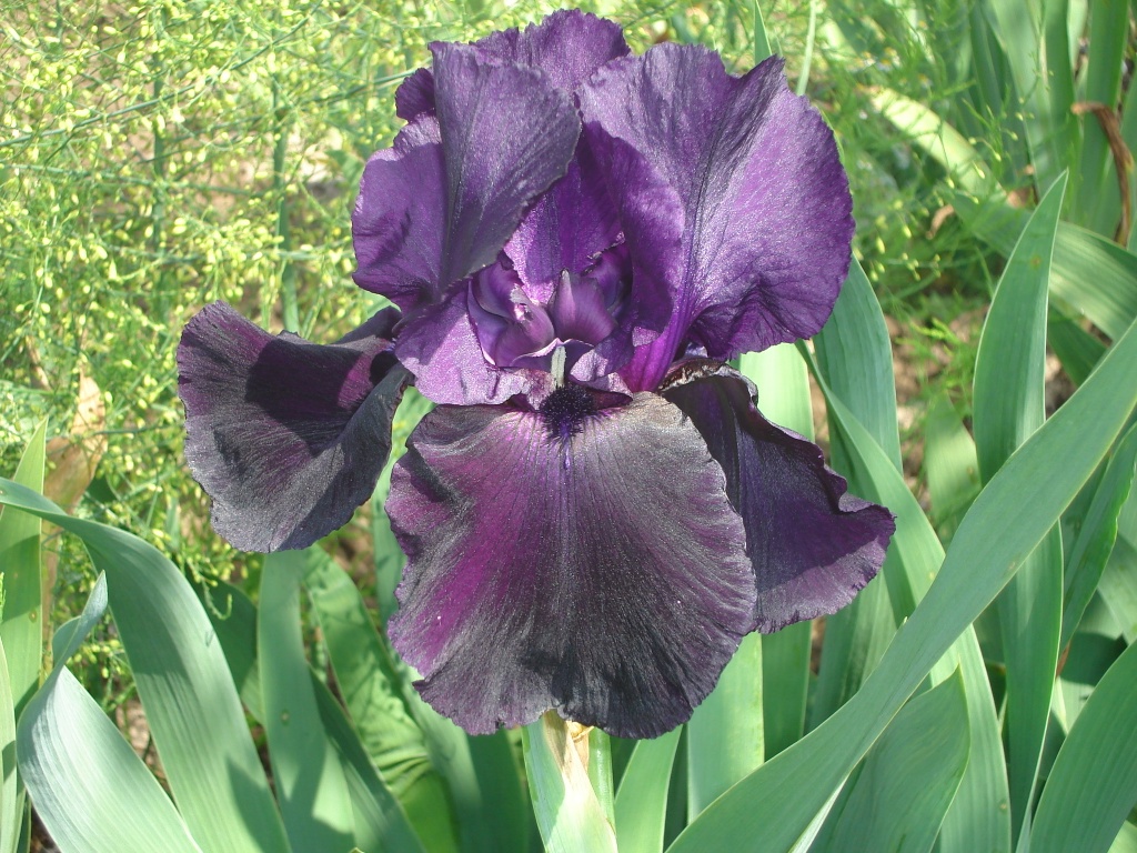Крупный германский сорт, вырастающий до 1 метра в высоту и около 0,4 метра в ширину. На мощных цветоносах формируется от 5 до 10 бутонов, расцветающих по очереди. Крупные цветки в диаметре достигают 15 см. Оттенок – темно-фиолетовый, с синими прожилками, серединка практически черная. Лепестки по краям гофрированные, воскоподобные.Саженец Superstition цветет около 2 недель, источает нежный, едва уловимый аромат. Сорт требует утепления на зиму, хорошо отзывается на подкормки во время роста и цветения.