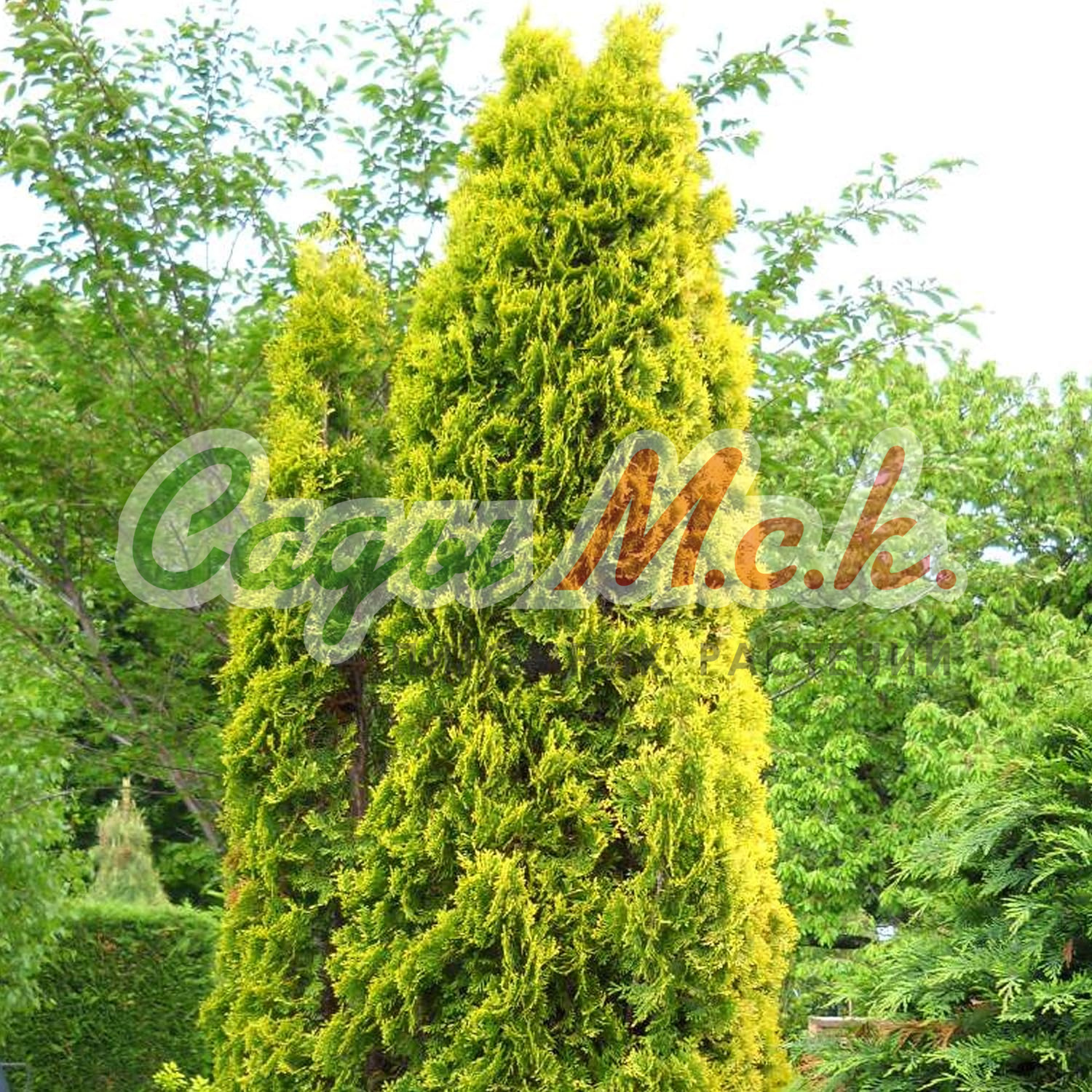 Туя западная Frieslandia - растение до 8 м в высоту и до 3 м в диаметре. Растет быстро: годовой прирост в высоту составляет 20 см. Крона плотная, широкая, колоновидная. Хвоя матовая, плотная, чешуйчатая ярко-зеленого цвета. Осенью листва становится серовато-бурого цвета, а весной снова зеленеет. Популярный сорт. Благодаря сравнительно быстрому росту часто используется для создания формованных живых изгородей.