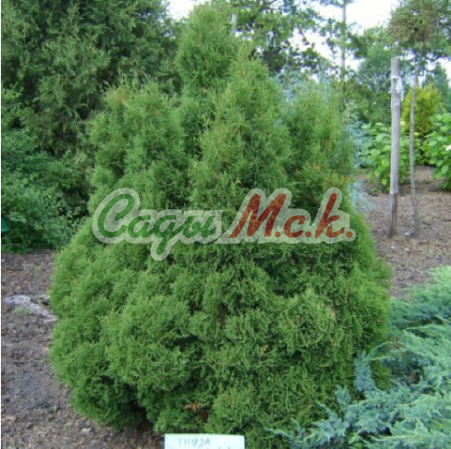 Узкая острая желто-хвойная туя высотой до 10 м. и диаметром кроны до 1,8 м. Дерево растет довольно быстро, ежегодно прибавляя до 30 см высоты. Имеет прямой, ровный и стройный ствол, к которому плотно прижимаются скелетные ветви, образуя красивую устремленную вверх общую форму дерева.Скелетные ветки короткие и мощные, тесно прижимаются друг к другу, а на концах начинают сильно ветвиться. За счет такого строение крона выглядит очень густой и плотной, формируется симметрично. Хвоя густая, яркая, золотисто-жёлтая, не подгорает на солнце, зимой приобретает бронзовый оттенок. Хорошо себя чувствует как на солнце, так и в полутени. На солнце не горит.<br>