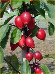 Яблоня Red Obelisk - дерево высотой 6 м, ширина кроны 2,5 м с колонновидной формой и темно красными листьями. Розовые цветки позднее становятся белыми, очень декоративны. Может зацвести повторно осенью. Плоды могут иметь цвет от желтого до красного, созревают в конце лета, съедобны. Изменяющиеся по цвету цветки. Яркое плодоношение. Зимостоек и морозостоек.