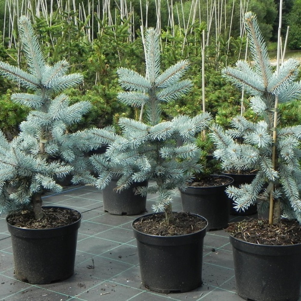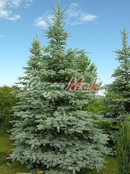 Дерево высокорослое, достигает 15 м в высоту и около 8 м в ширину. Обладает ионизирующими воздух свойствами. Ежегодный прирост составляет 15 см в ширину и до 30 см в высоту. Крупномер колючая Glauca покрыт серебристо-голубой, жесткой хвоей (около 2,5 см). Ель ценится благодаря необычной окраске и красивой форме кроны. Может использоваться в одиночных посадках, для формирования живой изгороди. Саженцы светолюбивы, морозостойкие, не требовательны к почве, но любят обильный полив.