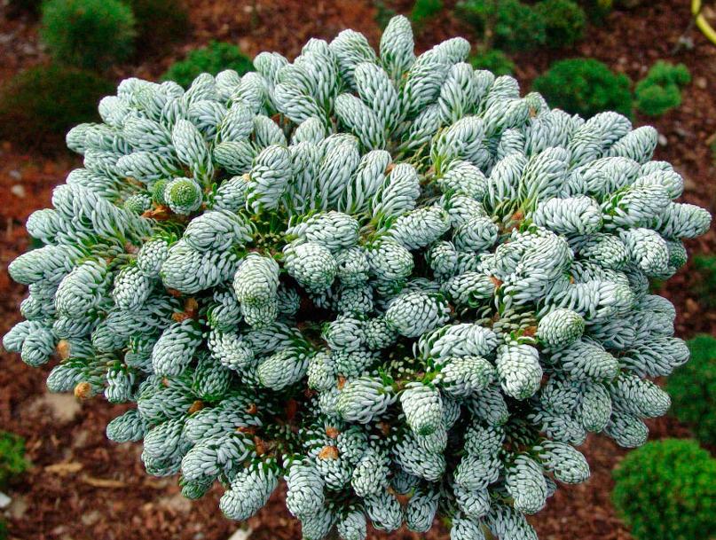 Пихта корейская Ice Breaker - это очень декоративный сорт. Верхушка растения абсолютно белая. В 10 лет в высоту растение достигает 30 см, а в ширину – 60 см. Выглядит эта пихта, как приплюснутая сфера, которая составлена из множества густых маленьких веточек. В целом, весь кустик смотрится уникально и аккуратно для сада, ведь им будет очень приятно любоваться. Пихта солнцелюбива и так же, предпочитает влажную почву.