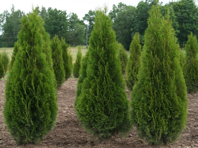 Туя западная Холмструп - взрослое деревце обычно не превышает 4 м в высоту. Туя формирует плотную, аккуратную крону в виде колонны чуть зауженной кверху. Сорт медленнорастущий, за год побеги удлиняются всего на 12 см. Ветви покрыты чешуйчатой хвоей темно-зеленого окраса. Крупномер западный Holmstrup хорошо развивается на солнечных участках, хотя выносит и тень. Туя отличается морозостойкостью, засухоустойчивостью. Саженцы используют для формирования живых изгородей, а также в одиночных посадках.