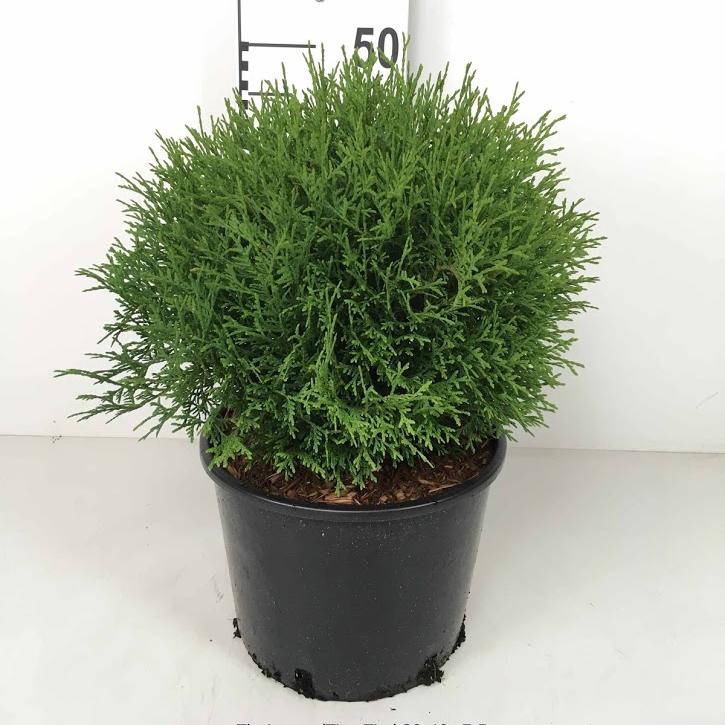 Саженцы туи западной Tiny Tim, шаровидного карликового кустарника, можно приобрести в нашем профессиональном питомнике. Взрослое растение не превышает 1 м в высоту (обычно 0,5 м) и около 1,5 м в ширину. Туя формирует шаровидную, плотную крону. Хвоя – чешуевидная, темно-зеленого оттенка. Сорт медленнорастущий, но пользуется популярностью благодаря своей неприхотливости в выращивании. Крупномер западный Tiny Tim не боится продолжительной засухи или избыточного переувлажнения. Туя используется в одиночных и групповых посадках, а также для облагораживания каменистых горок.